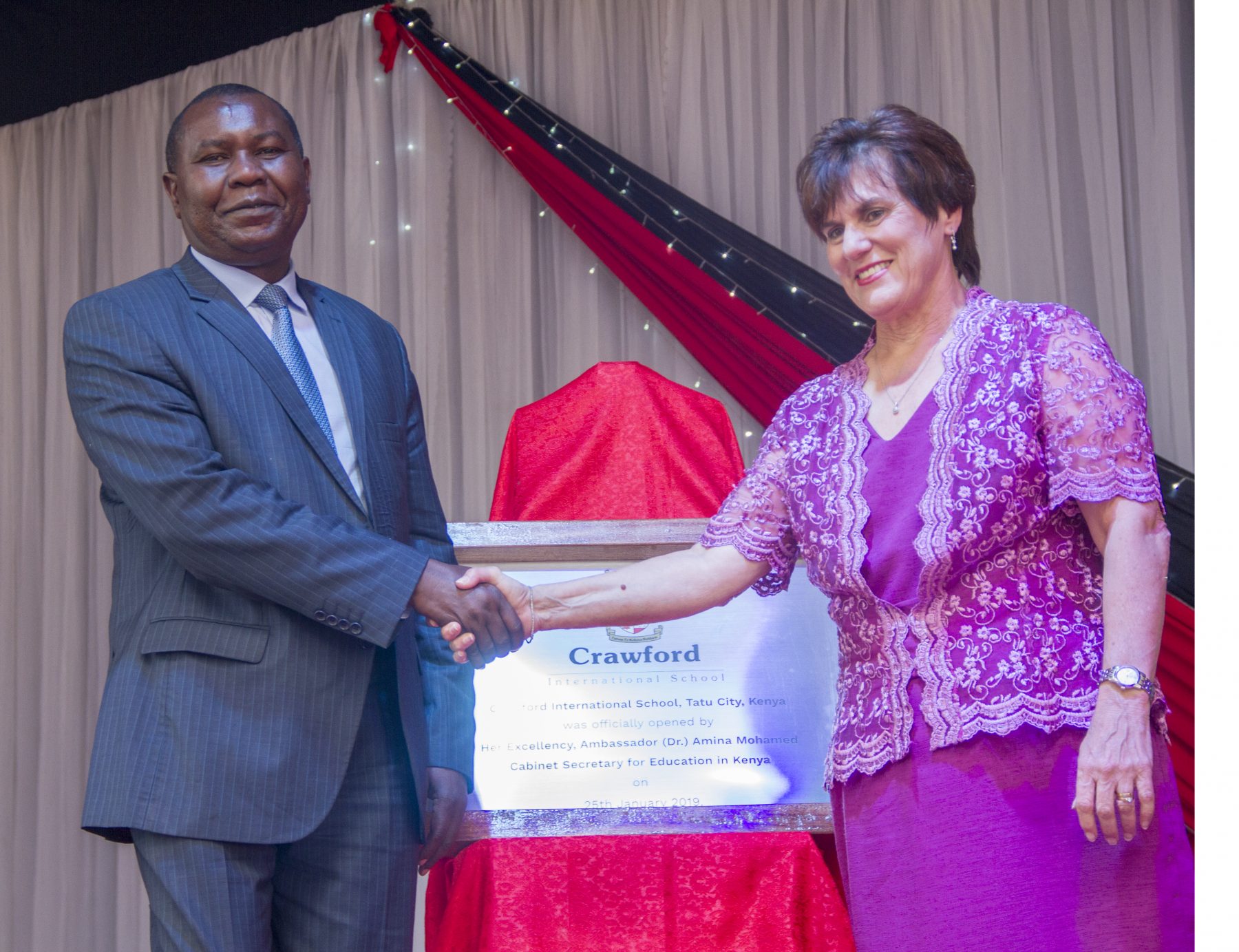 Dr Pius Mutisya Director Quality Assurance and Standards, State Department of Education and Mrs Jenny Coetzee MD Crawford International School Kenya