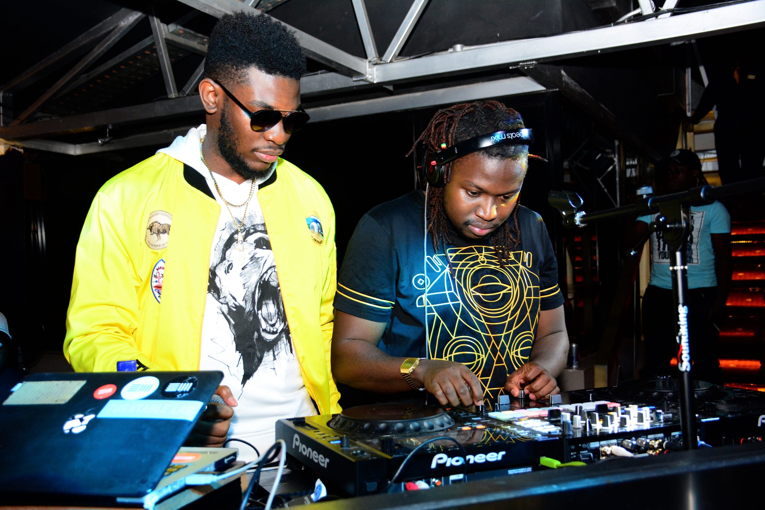 (L-R)Nigerian artist Nanson Amadi and Twin Dj during the third edition of the Ciroc Life Party series at Milan.