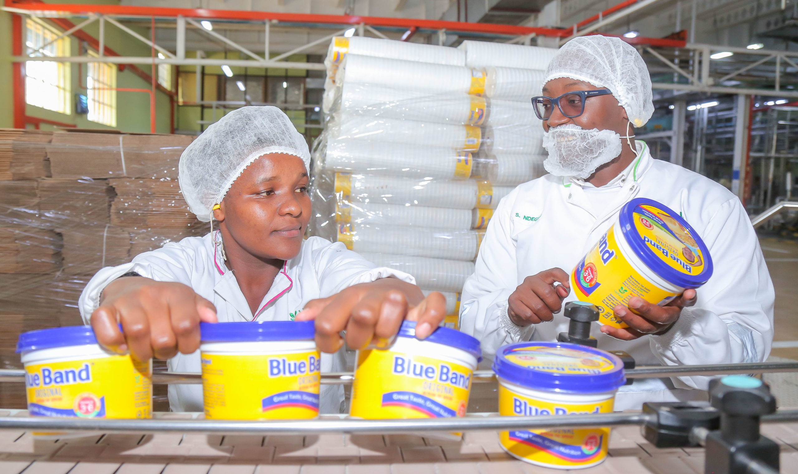 Upfield Head of Manufacturing Simon Ndegwa and Mercy Kathure showcase the production process during activities to mark World Food Safety Day