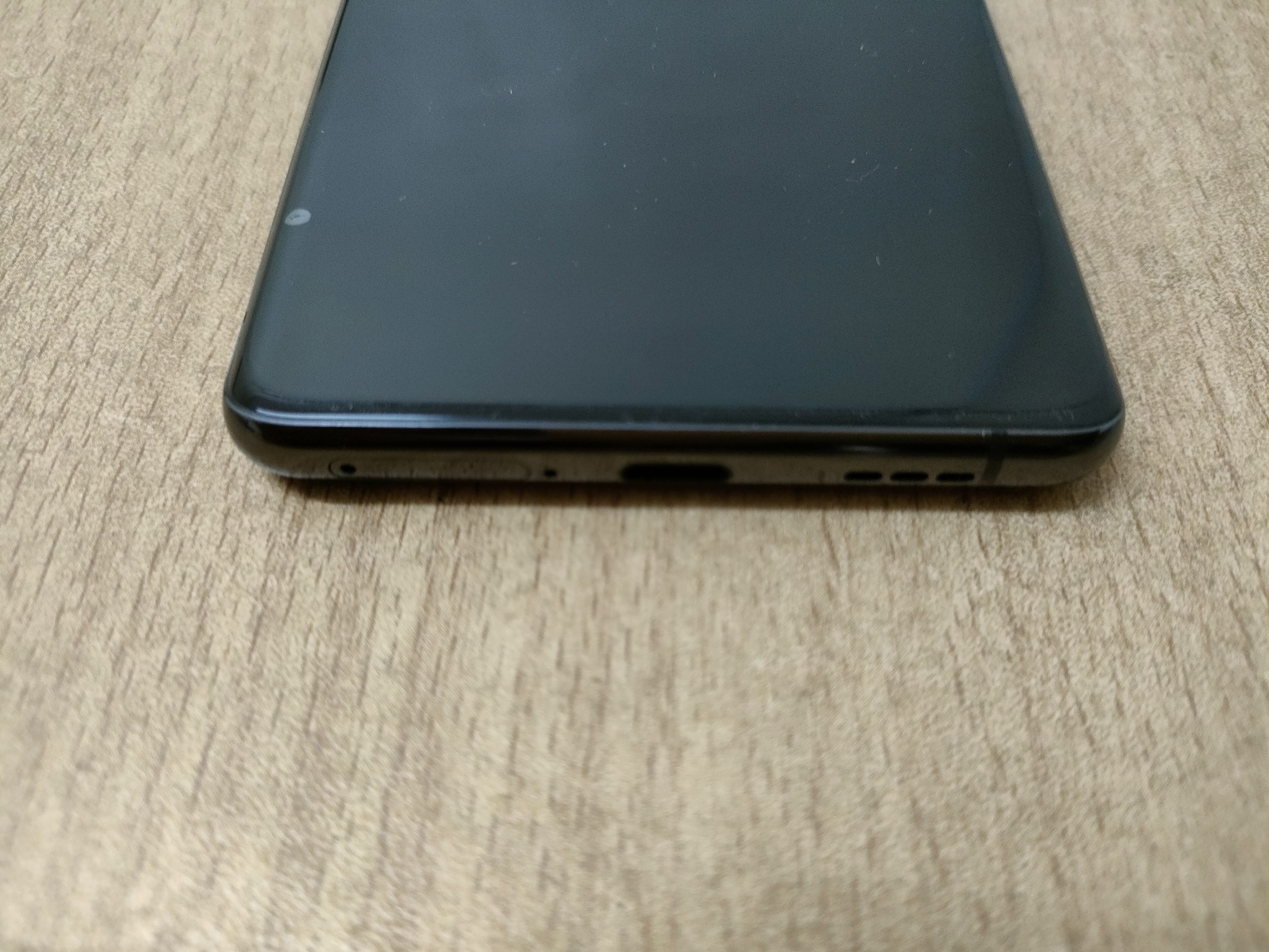 The sim slot which holds two micro sims is located at the bottom of the phone together with the mono speaker and a USB-C charging port.