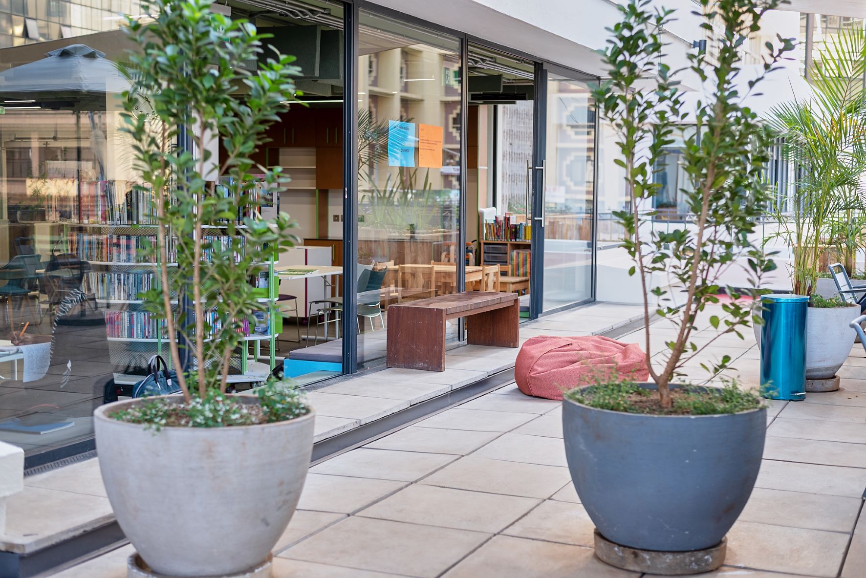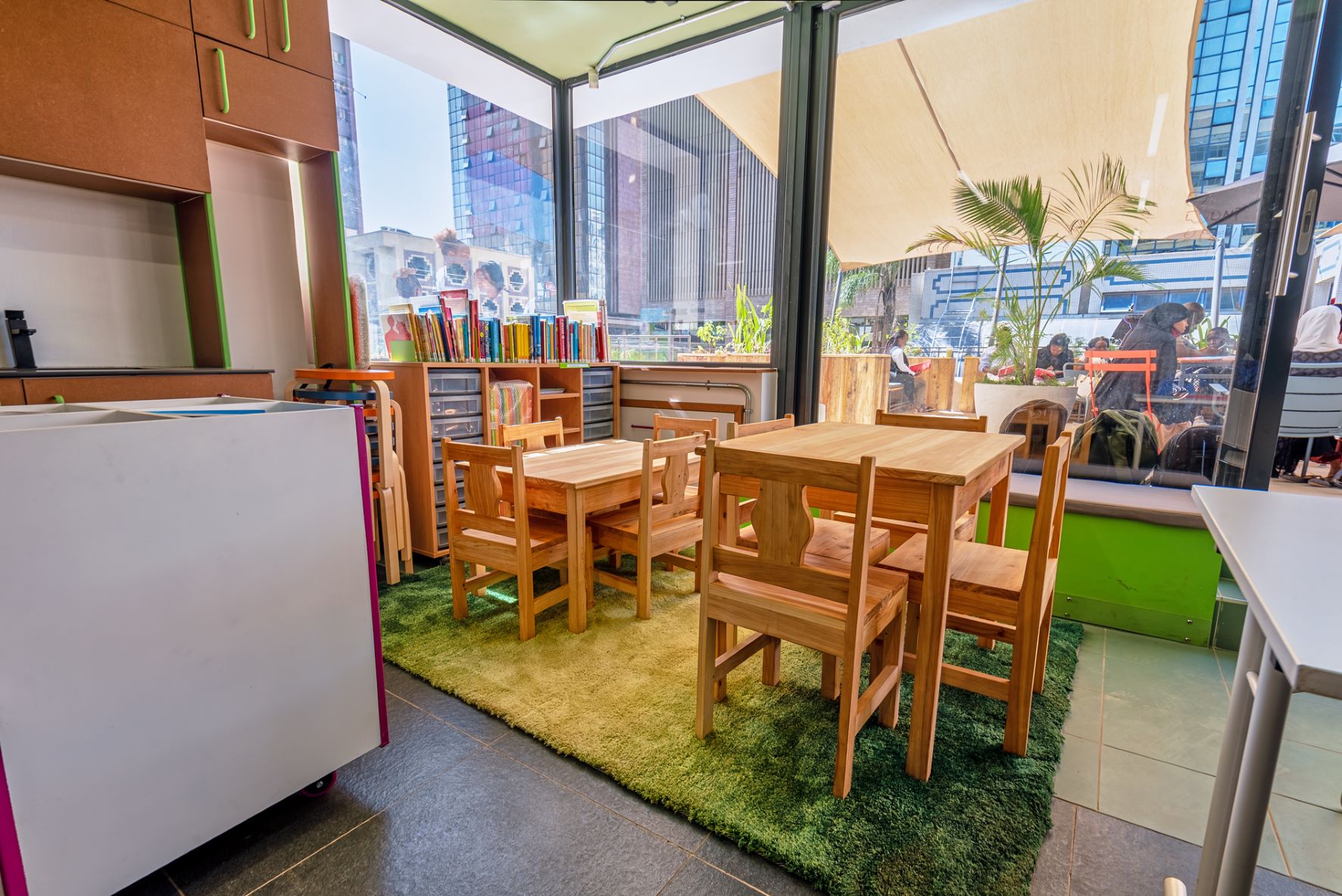 The library received a facelift and has been fitted with glass walls and transformed into a much larger area that spills over into the terrace making it easily accessible, functional and fit for learning and knowledge sharing. Additionally, the library includes a revised stock in books after the Goethe-Institut Nairobi reduced nearly three quarters of the collection they had and gave them out to universities, museums and other partners. Furthermore, there is a critical media reflection in progress with questions around access to media as well as offering digital formats and reaching out to new audiences.