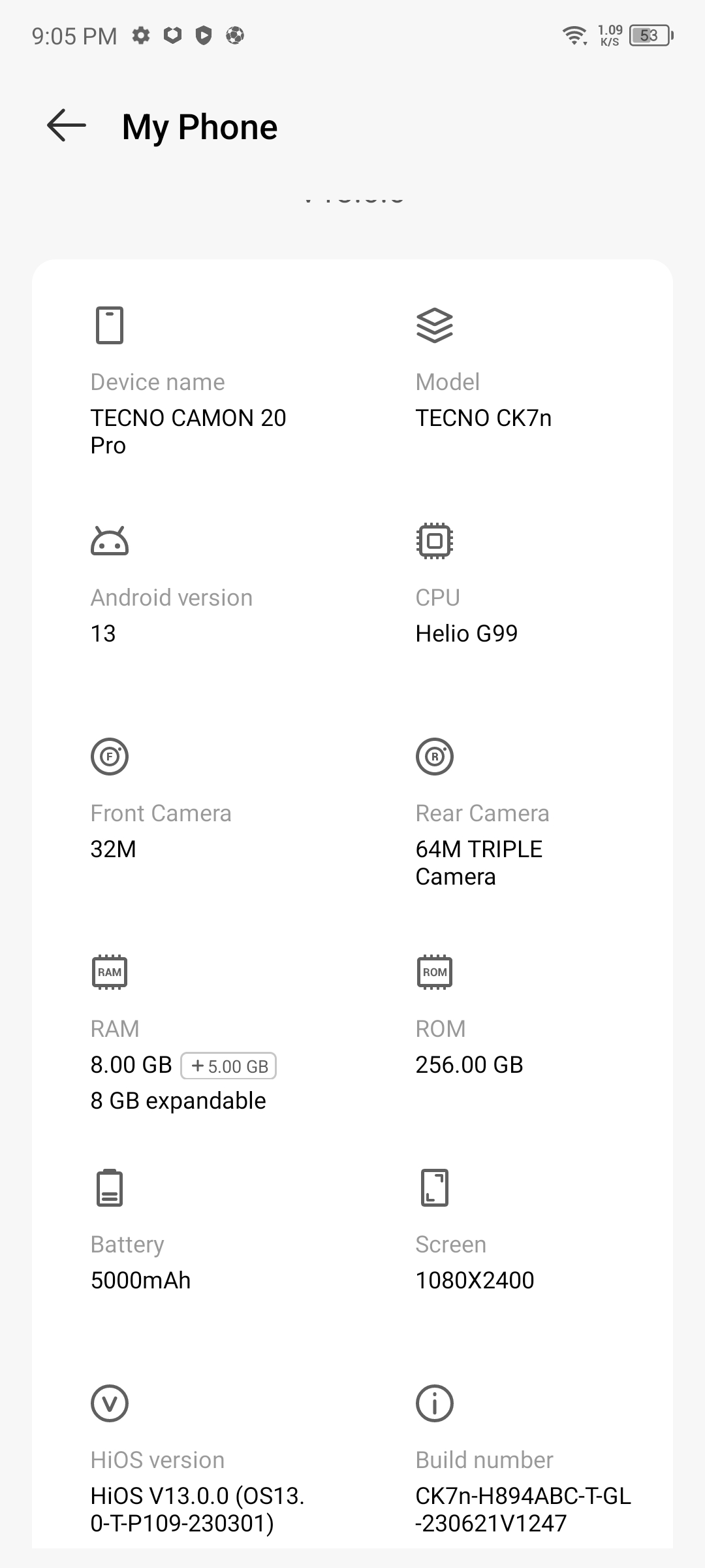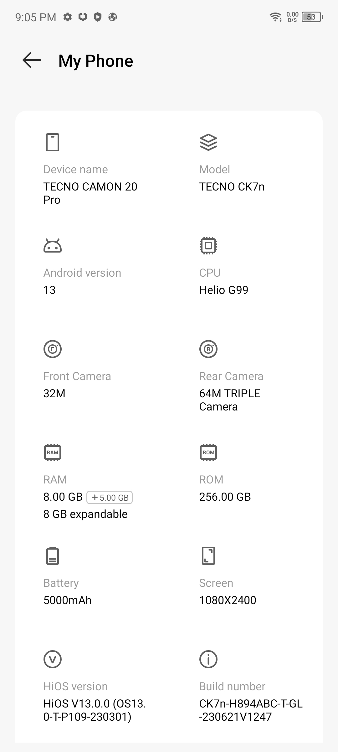 The Tecno Camon 20 Doodle edition runs on the Android 13 platform and comes with Tecon’s custom skin HiOS currently in its 13th version.
