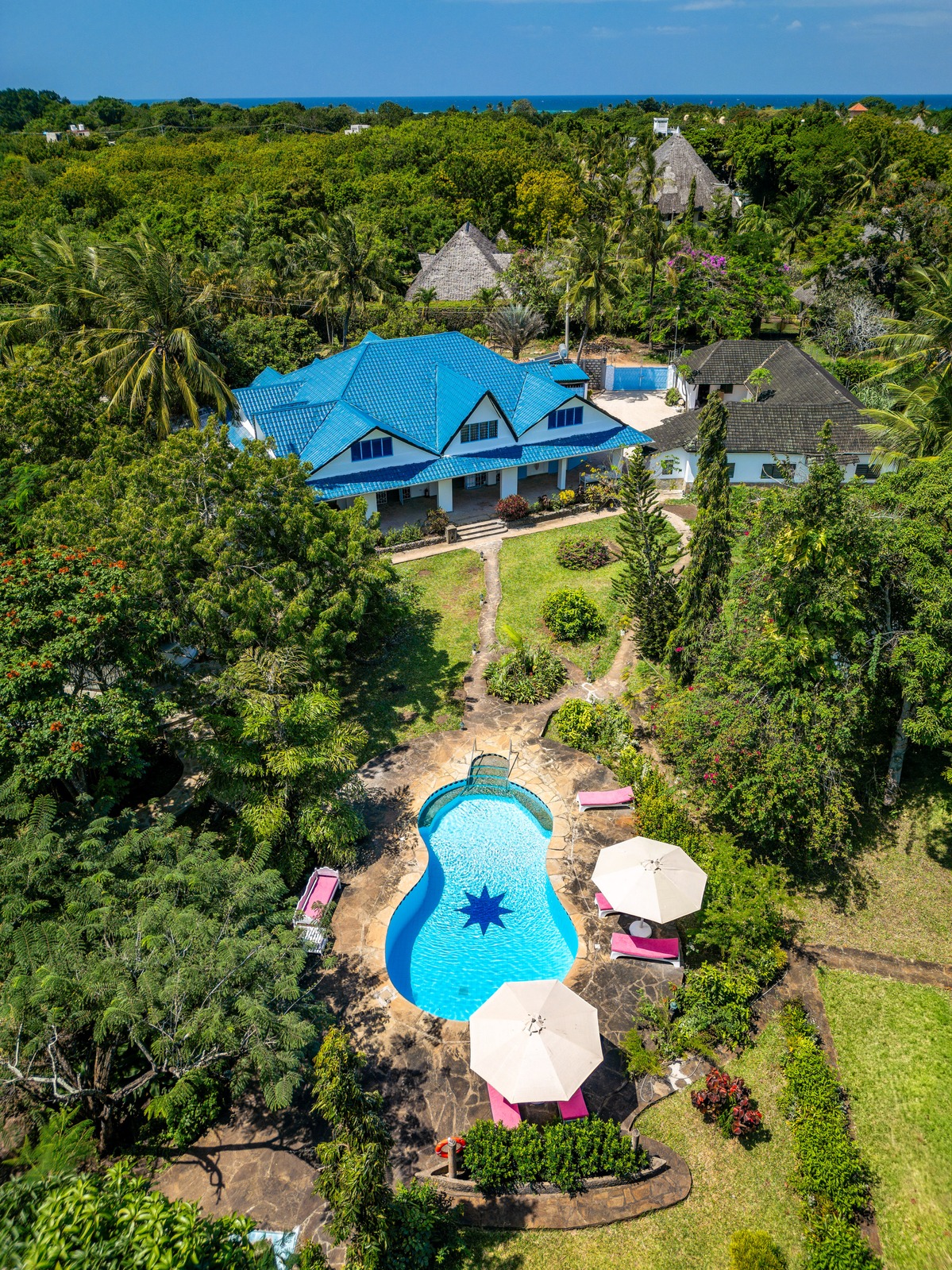 The rooms are tastefully curated: modern artwork, white and blue vinyl-accented walls, antique décor, and eye-catching macramé pieces elevate the interiors. Diani’s leading travel planner and tour agent, Eve Njambi of Explore With Eve, puts it best: