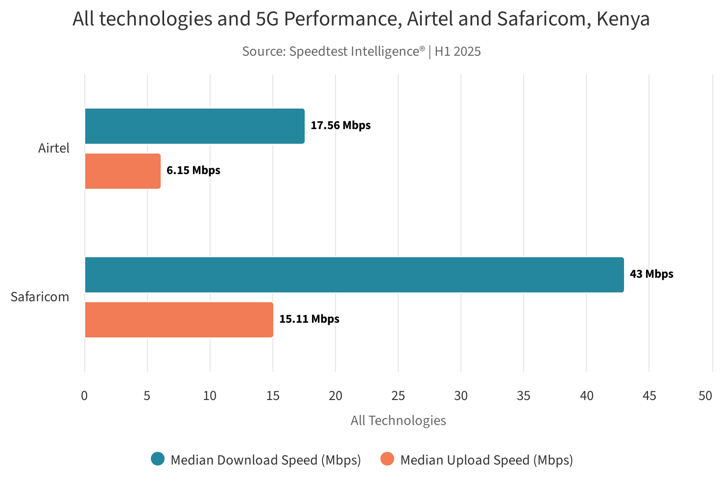 | Safaricom | 43 Mbps | 15.11 Mbps |