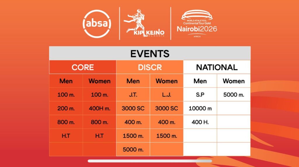 The Ksh. 35 million commitment is part of Absa’s broader Ksh. 60 million investment in the 2026 national athletics calendar. A breakdown of the Kip Keino Classic funding includes: